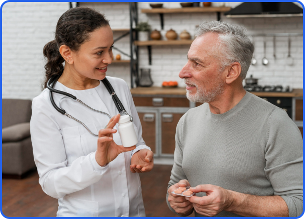 Garantizamos que recibas tus medicamentos correctamente y en el momento adecuado, bajo la supervisión de nuestro personal capacitado, para mantener tu tratamiento al día sin complicaciones.