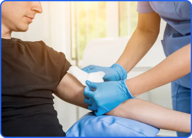 Nuestro equipo especializado en curaciones utiliza técnicas avanzadas y materiales de primera calidad para asegurar una curación efectiva y rápida de heridas y lesiones, tanto en el hospital como en tu hogar.